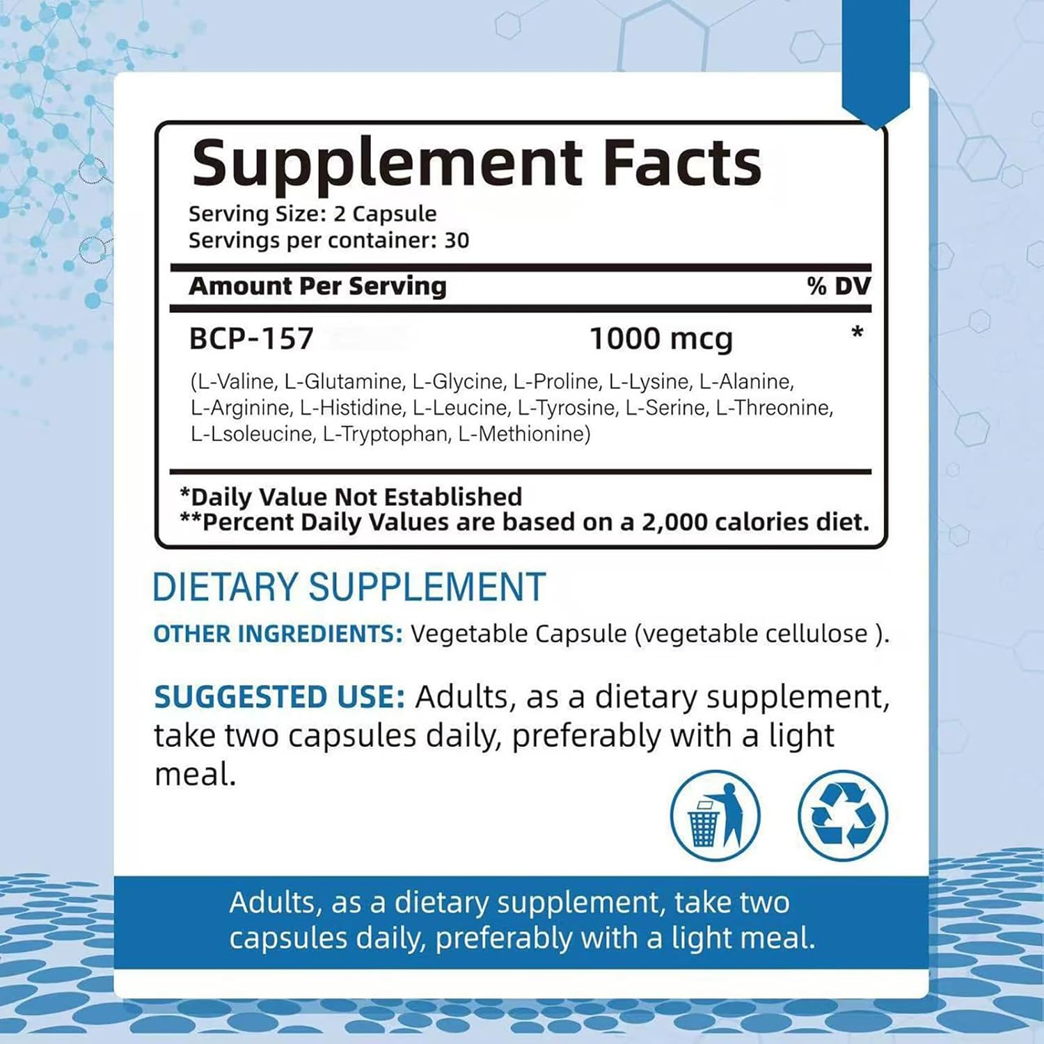 • 1000 mcg of bioavailable BPC‑157 (arginine-bound) for superior absorption